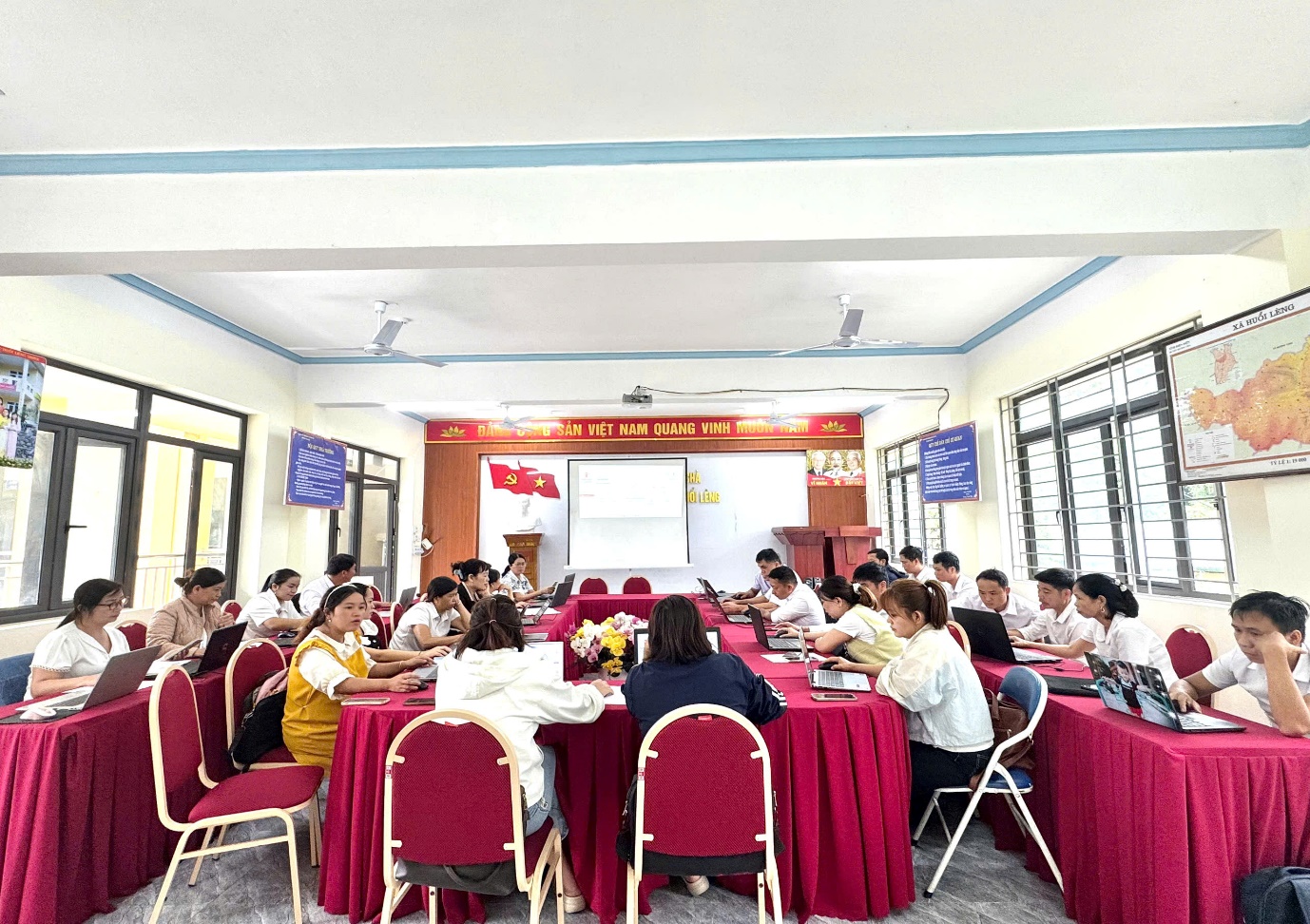 Thực hiện kế hoạch năm học 2025 – 2026 của trường PTDTBT Tiểu học Huổi Lèng, nhằm nâng cao năng lực ứng dụng công nghệ số trong dạy học, chiều ngày 24 tháng 10 năm 2025, Trường PTDTBT Tiểu học Huổi Lèng đã tổ chức buổi tập huấn sử dụng ứng dụng “Vui đọc cùng em” cho toàn thể cán bộ, giáo viên trong nhà trường. Tham dự buổi tập huấn có các đồng chi trong Ban giám hiệu, cùng toàn thể giáo viên trong nhà trường. Tại buổi tập huấn các thầy cô giáo đã được hướng dẫn, chia sẻ cách thức cài đặt, sử dụng và khai thác hiệu quả ứng dụng “Vui đọc cùng em” trong các tiết học Tiếng Việt và hoạt động thư viện.