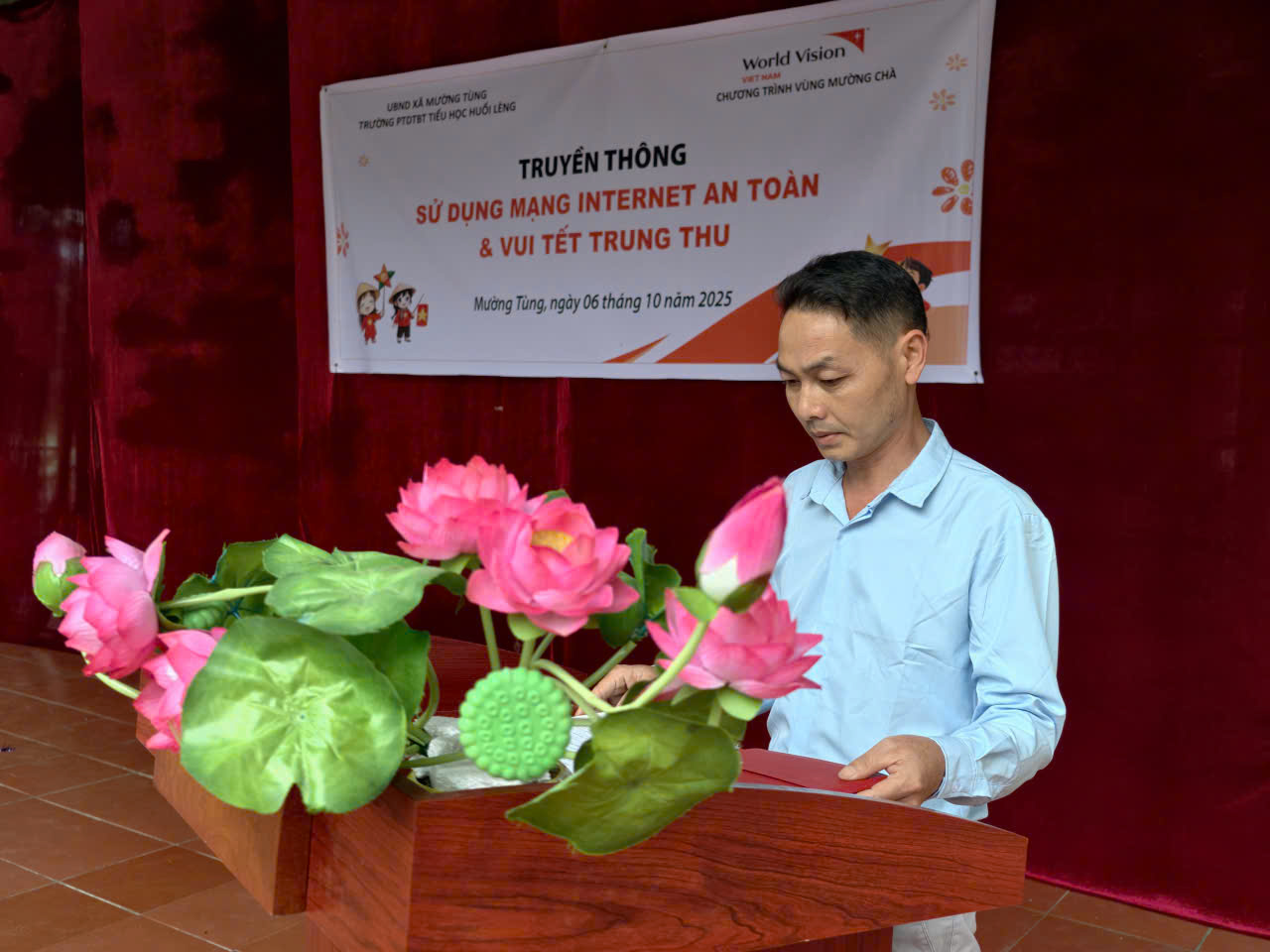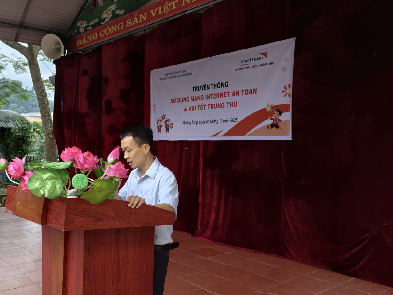Hòa chung với không khí đón Tết trung thu của các em thiếu nhi trên cả nước. Chiều ngày 06/10/2025 trường PTDTBT Tiểu học Huổi Lèng đã long trọng tổ chức tết Trung thu cho các em học sinh. Nhà trường rất vinh dự được đón đồng chí Mùa A Sinh – cán bộ phòng Văn hóa – Xã hội xã Mường Tùng đến dự phát biểu và trao quà cho các em học sinh trường PTDTBT TH Huổi Lèng. Diễn ra tại sân trường là các tiết mục văn nghệ đặc sắc do đội văn nghệ của nhà trường và các tiết mục văn nghệ đã được tuyển chọn của các lớp. Cùng chiều nhà trường đã lồng ghép truyền thông về sử dụng mạng Internet an toàn, các em rất hào hứng trả lời các câu hỏi mà ban tổ chức đã đưa ra và các em đã nhận thức được như thế nào là cách sử mạng Internet an toàn. Thầy và trò trường PTDTBT TH Huổi Lèng luôn nhận được sự quan tâm đặc biệt của Đảng ủy – Hội đồng nhân dân - Ủy ban nhân dân - Ủy ban Mặt trận tổ Quốc xã Mường Tùng. Cũng trong dịp này nhà trường đã trao 13 phần quà cho các em học sinh có hoàn cảnh khó khăn có ý thức vươn lên trong học tâp. Phần được mong chờ nhất là phần “Phá cỗ Trung thu” được diễn ra tại các lớp, các em học sinh rất vui tươi, phấn khởi và hào hứng phá cỗ… Tết Trung thu năm nay của trường PTDTBT TH Huổi Lèng là một kỷ niệm đẹp trong ký ức tuổi thơ của mỗi học sinh dưới mái trường tiểu học.